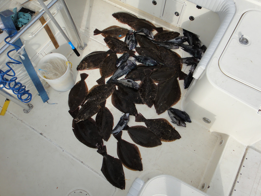 3) Larry is now known as Seabass Larry cuz he was beatin on them in the bow and added 4 nice keeper fluke to the mix!